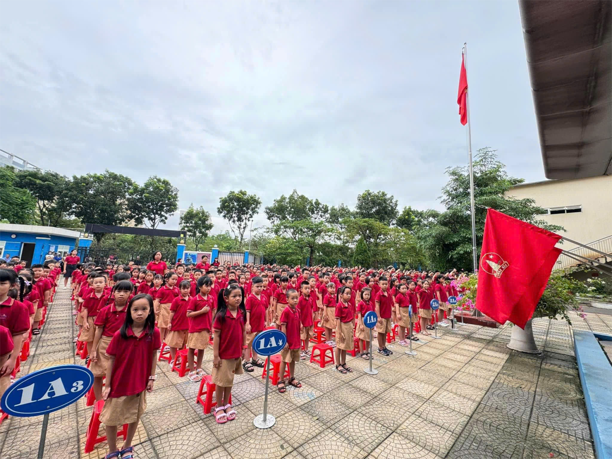 Các con học sinh đã có một buổi chào cờ đầu tiên của năm học mới đầy cảm xúc. Hình ảnh các con đứng nghiêm trang dưới lá cờ Tổ quốc, hay khoanh tay, mỉm cười, cúi chào nhau thật đáng yêu. Cũng trong buổi chào cờ này, các con học sinh được lan tỏa chủ đề năm học 2024 - 2025 và quyết tâm thực hiện điều đó!