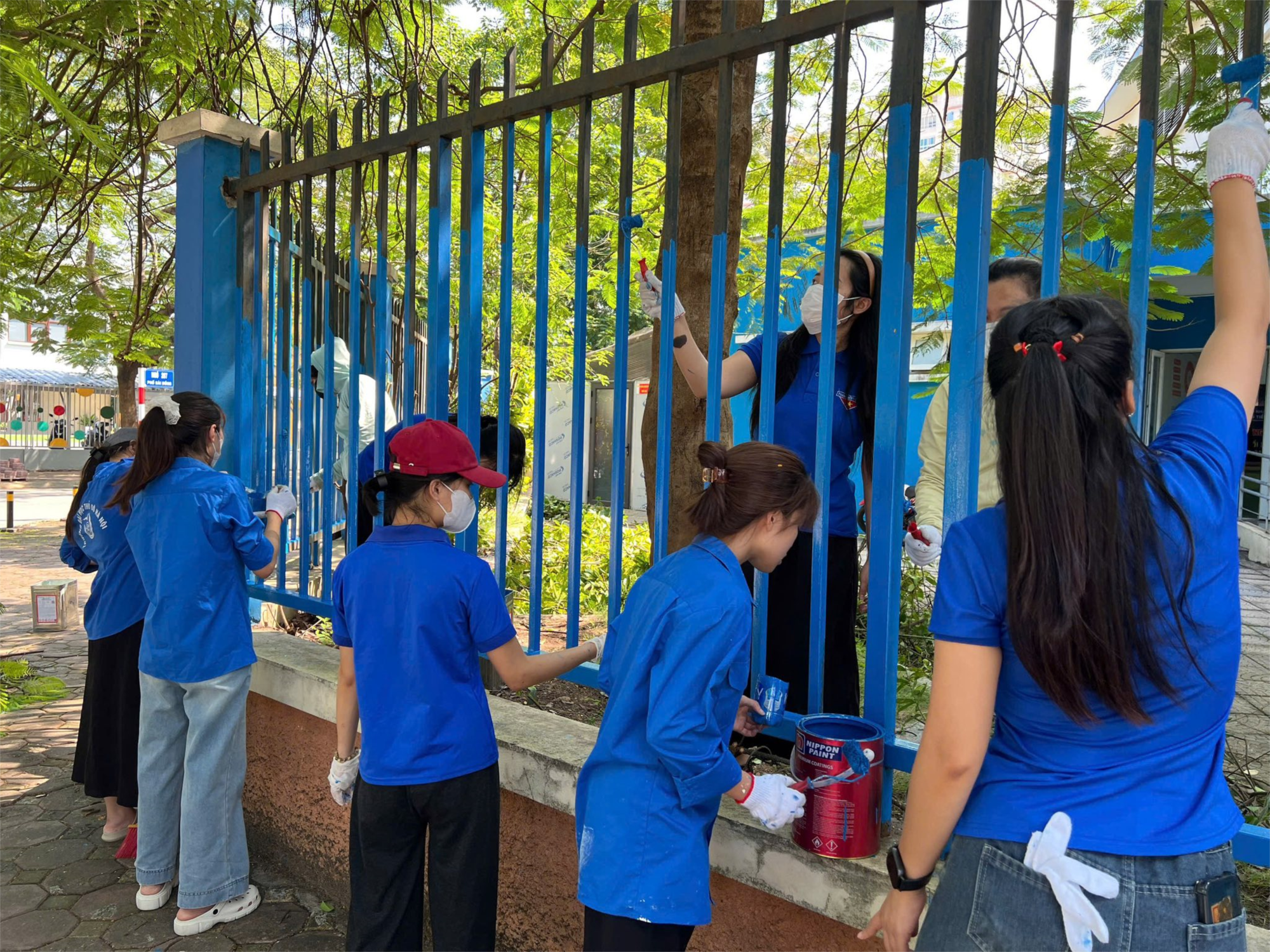 Hòa chung không khí tưng bừng chào mừng thành công Đại hội Đảng bộ Thành phố Hà Nội lần thứ XVIII, nhiệm kỳ 2025-2030, sáng nay (18/10/2025), chi đoàn Trường Tiểu học Nguyễn Bỉnh Khiêm đã tổ chức hoạt động “Thứ 7 Xanh” với tinh thần nhiệt huyết và trách nhiệm.Toàn thể đoàn viên nhà trường cùng công ty kết nghĩa Goshi đã đồng lòng chỉnh trang cảnh quan sư phạm, làm mới khu vực cổng trường. Những phần tường, hàng rào rêu phong ở khu vực cổng đã trở nên sáng - xanh - sạch – đẹp – an toàn sau một buổi sáng.